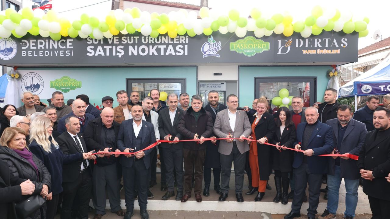 DERTAŞ’ın kendi araçlarıyla her gün fabrikadan alınıp satış noktalarına ulaştırılan ürünlerle çiftçiler ve tüketiciler kazanırken, proje köylerde istihdama da önemli oranda katkı sağlıyor. İlk etapta Yavuz Sultan Şubesi, Derince Tünel Üstü, Yenikent Şubeleri, Yelken Kafe, Kaşık Tesisleri ve Beşdivan Tesisleri’nde satışa sunulan ürünler artık iki yeni noktada daha halkla buluşmaya başladı. İbni Sina ve Çınarlı şubeleriyle birlikte sayısı dokuza çıkan yeni satış noktalarının hizmete girmesi dolayısıyla Derince’de bir tören düzenlendi.